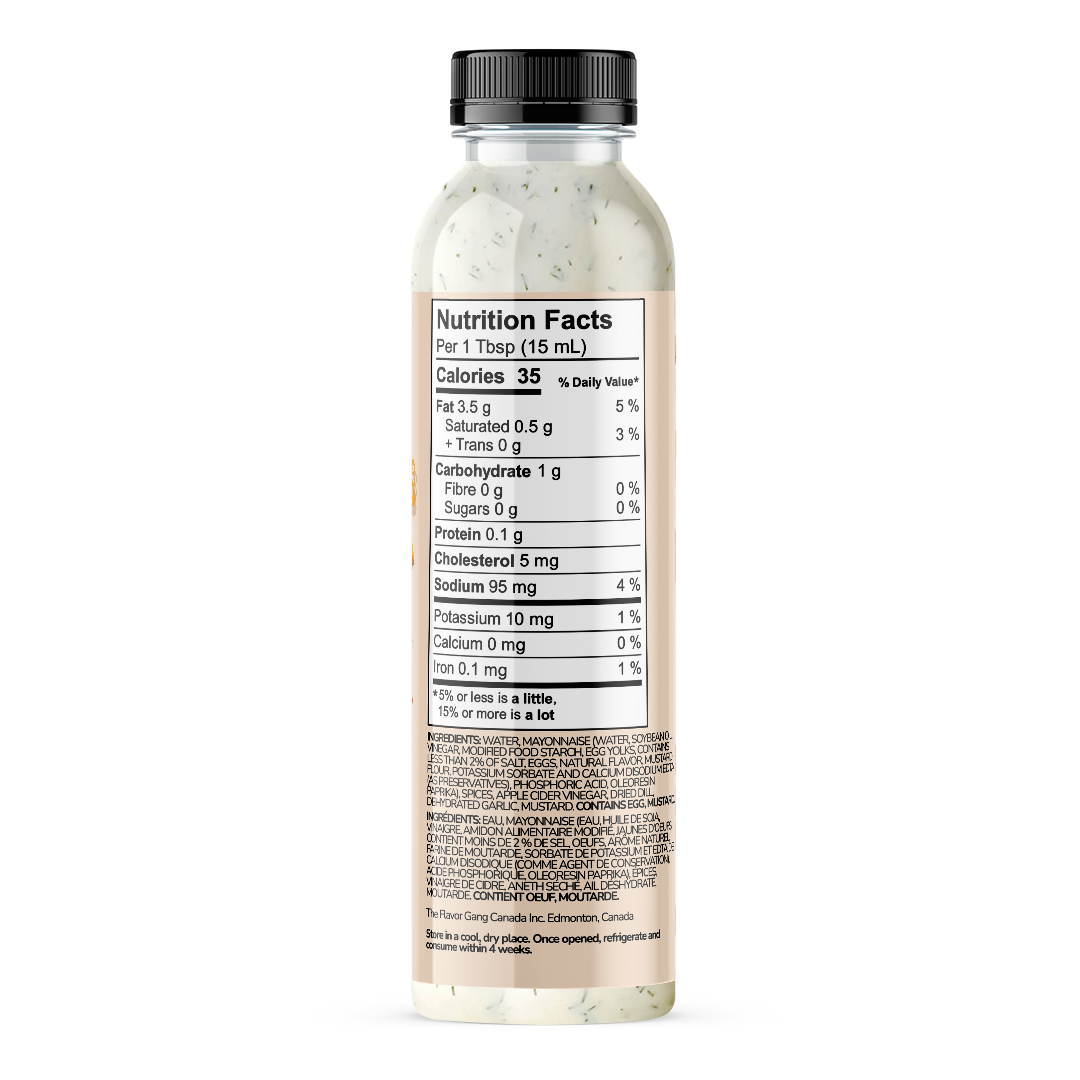 Contains eggs… 35 calories per tablespoon, 3g fat, 0g carbs, 0g protein